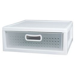 Sterilite 21018004 Shallow Closet Storage Drawer, WhiteSterilite 21018004 Shallow Closet Storage Drawer, White Features:; Modular closet drawers; Great for getting organized; Ventilation holes allow clothing to breath; Comfort grip handles and rollers enable the drawers to open and close smoothly; Securely stack with unique tabs that prevent tipping when opened; Lids can be removed to snap frames together creating a more customized storage solution; White; 20" x 19-1/4" x 7-3/8"